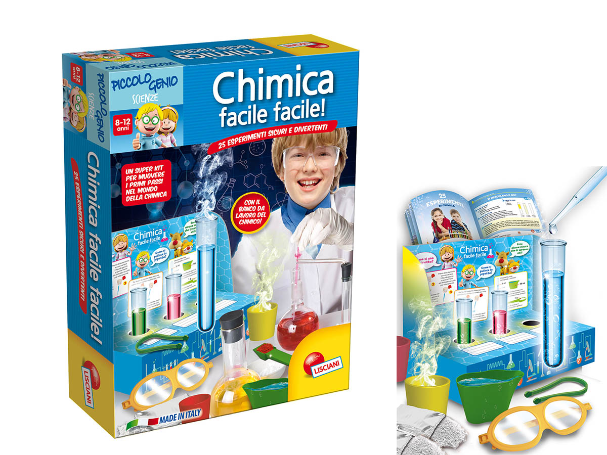 BE 25 ESPERIMENTI, FACILI E SICURI, PER I PRIMI RUDIMANTI DI CHIMICA. NELLA CONFEZIONE PROVETTE, REAGENTI, BICCHIERI E ALTRI STRUMENTI CON UN MANUALE. DAI 8 A 12 ANNI