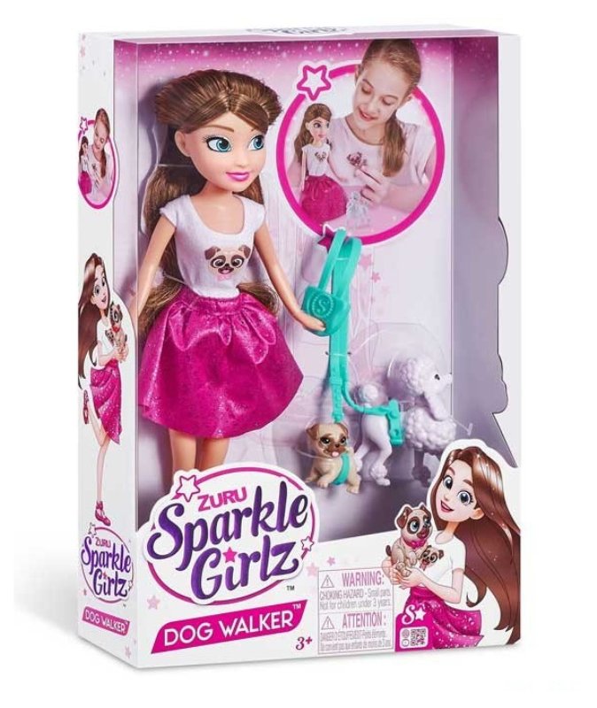 SPARKLE GIRLZ 10.5'' Doll Dog Walker Window Box,Bulk